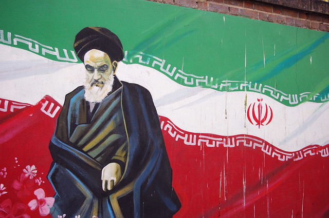 mural depicting the ayatollah khomeini who assumed the leadership of iran following the islamic revolution