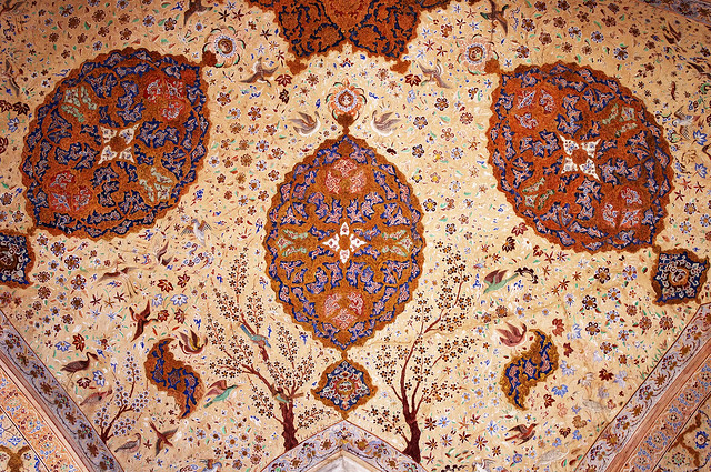 artwork that’s painstakingly done at the ceiling of ali qapu palace