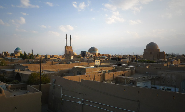I watched the sunset from the Hosseinieh, the only high building that I could climb up to. From above, it was easy to appreciate the unique city skyline consisting of water reservoirs and wind towers competing for attention with the islamic minarets, which are unique to Iranian desert cities like Yazd due to the harsh weather conditions.