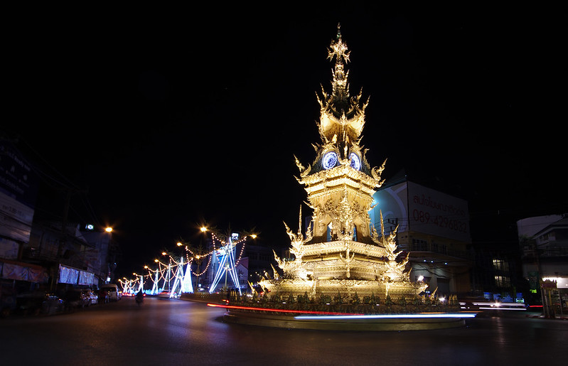 A commonly-used symbol of Chiang Rai, the golden tower sparkles in the day and is floodlit at night. It was designed by the same artist who created the White Temple so the intricate artwork is not entirely surprising. At night, there’s a little light show at the clock tower where it turns to different colors. If you’re heading your way to the walking street, then it’s worth stopping by for a few minutes.
