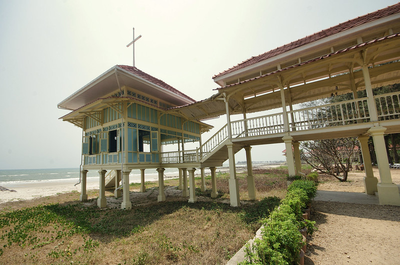 Around thirty or forty minutes drive from downtown Phetchaburi, near the border with Prachuap Khiri Khan, the Maruekhathaiyawan Palace is slightly out of the way but makes for a worthy inclusion to any trip around Phetchaburi. Often only visited by daytrippers from nearby Hua Hin, the seaside teak palace is a gorgeous summer retreat built by King Rama VI in 1923. Painted in light green, the palace is quite unlike the other more ornate Thai palaces I’ve seen though undoubtedly beautiful in its own way. It is raised from the ground by pillars, offers plenty of open spaces and directly faces the sea.