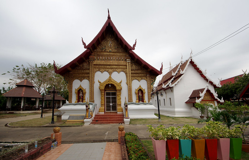 After making my way inside the old town, I stopped by Wat Phra Bat Ming Muang Worawihan – the first temple that one usually sees when entering the walled enclosure. It’s not the most atmospheric of temples. The number of buildings in the area and cars on the parking lot make it appear a lot busier than it really is.