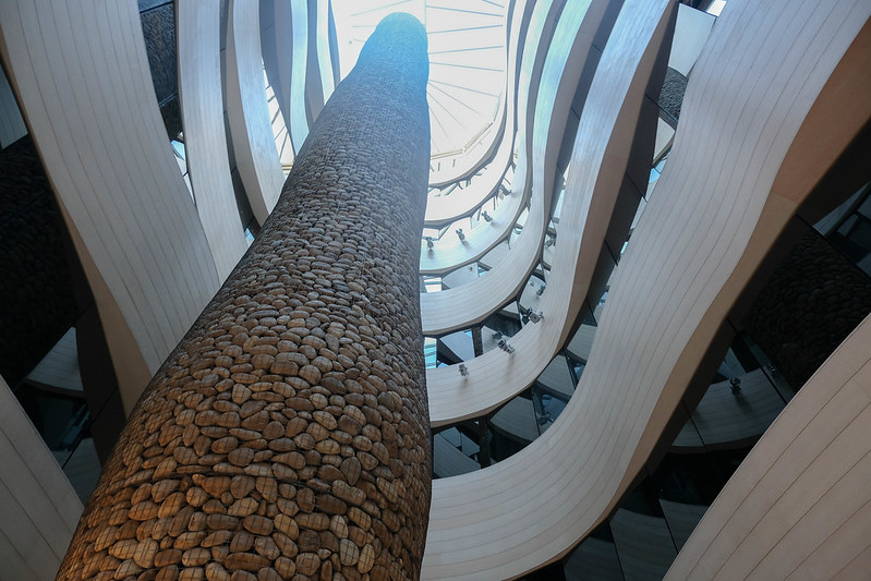 The art pieces in the hotel are not just mere paintings. Of note is the tall bag of rocks soaring above the hotel’s distinctive curving atrium as well as the mini-clocks at the lobby that form to tell the time. Even the lift lobbies on the individual floors have some sort of art work displayed.