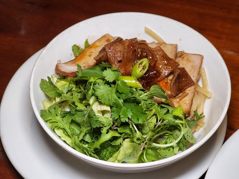 When you’re in Hoi An, you’ll no doubt encounter restaurants with the words “Cao Lau” prominently displayed in front. Cao Lau or (高楼) in old Vietnamese, is a noodle dish that originates from this town. It’s a bit like char siew noodles but the noodles used for cao lau are springy, chewy and much thicker. It also comes with a host of other herbs. The name is believed to have been derived from the ancient traders who plied this city and who often stayed well above ground when having this dish.