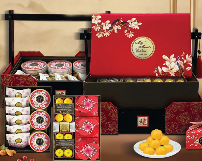 Aside from selling standalone tins and bottles of popular CNY goodies and cookies such as Arrowhead Crackers (S$18.60), CNY Cranberry Almond Cookies (S$20.64) and more, My Mum’s Cookies is also selling beautifully packaged gift sets that can be given to friends and loved ones. These range from the Value CNY Gift Set (S$29.18) that comes with 2 bottles of cookies in an attractive red box to the Sakura CNY Gift Set (S$63) which comes in a 2-tier box and up to 18 different kinds of cookies.