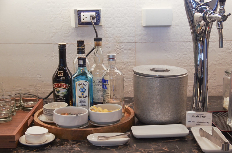 You can find a variety of wine and spirits here to mix your own cocktails. It’s nothing to fancy and the range is similar to the SilverKris Lounge in Changi Airport.