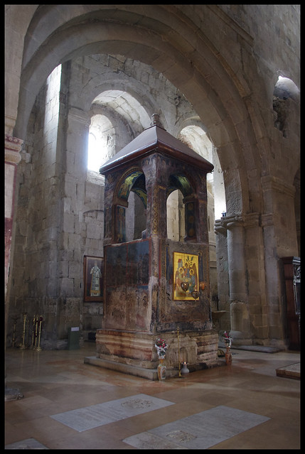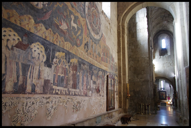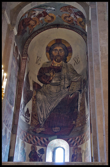 We ended up back in town, not far from where we started. We walked to Svetitskhoveli Cathedral – again another name I couldn’t pronounce. This church looked pretty impressive from inside and out. It looked really ancient, and there were even some frescoes inside the church walls. Jesus Christ’s robes, taken after his crucifixion, are also said to be buried there. It felt like a very holy place, and the seemingly unrestored interiors added to the atmosphere.