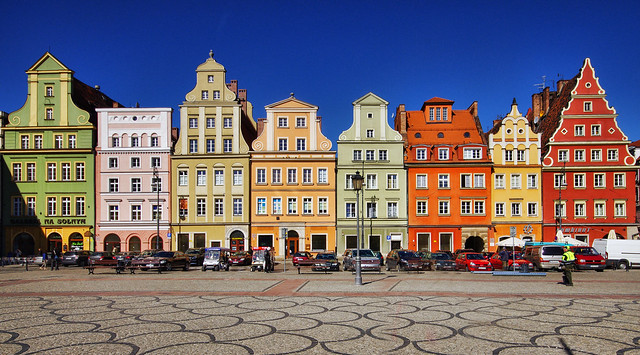 Tucked away behind the old town square, towards the southwest is a smaller square called Plac Solny. This is an area not to be missed, with its trademark colorful apartment buildings that seem to have sprung from a cartoon.