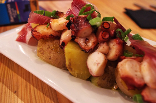 The free walking tour ended at about 1pm. We gave the guide Eur 5 each for his efforts (these guides are unlicensed and rely on tips to make a living). It was just the right time to have the typical late Spanish lunch. We decided to have it at Ovejas Negras which is quite near the cathedral. It’s a modern-type bar cum restaurant and served up some unusual types of tapas. We tried the gyoza which was surprisingly tasty, considering that Asian food here is usually nothing to write about. We also tried the pulpo (octopus), one of my favorite tapas and something I would order several more times for the duration of the trip.