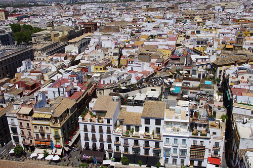 We decided to join a free walking tour of the city. The meeting point was at the Giralda, right by the Seville cathedral. One of the major sights in Seville and my first taste of Islamic architecture in the country, the church was a fine example of how former mosques were turned to churches after making modifications in the exteriors. As with the case of the Giralda which has since been converted into a bell tower, it looks very similar to some of the minarets in Morocco, even right to this day. It’s possible to climb up to the top of the tower, which we did after the walking tour. The view was fantastic and we could see the entire old town from up there.