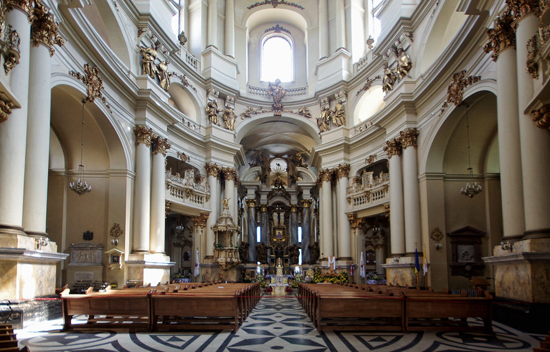 Another prominent city landmark, the dome of the Dominican Church can be seen from miles away. It was originally built as a Roman Catholic Church which explains the appearance both inside and out. Today, the building now functions as a Greek Catholic Church and is one of the best late Baroque examples in Lviv.
