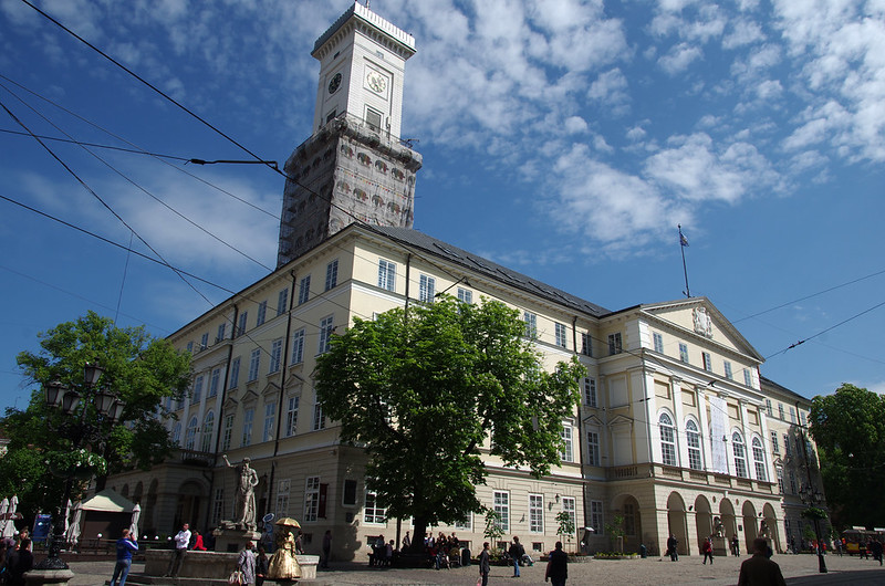 Located in the city of the Rynok or Market Square of Lviv, the Town Hall is another place to go for some wonderful views of the old town. By going up to the tower, you actually get to see views from four sides! Enter through the main entrance of the town hall, where several signs will point you to staircases that lead all the way up.