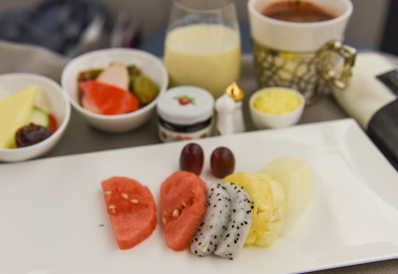 I woke up around 6 hours later (the longest duration I’ve even slept on a plane) as the lights came back on and crew members were busily setting table mats for breakfast.