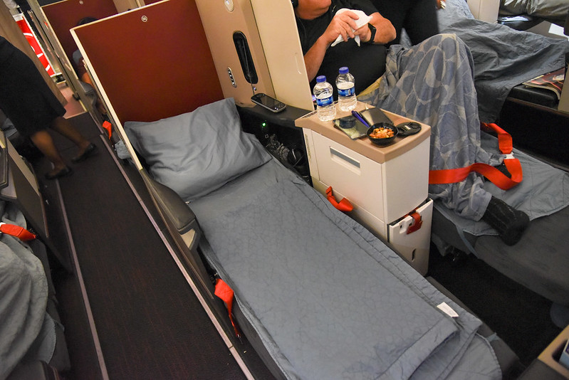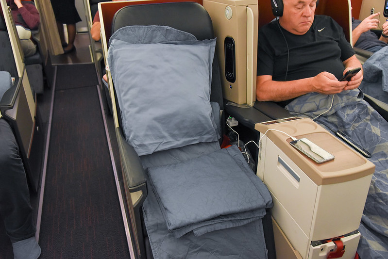 After the meal service, a flight attendant came by for turndown service. This involved a mattress and quilt that was put on my seat. There was even a waist-level pillow for ergonomic support. The crew made the conscious effort to do turndown service on every seat – a level of detail I usually don’t see in business class.