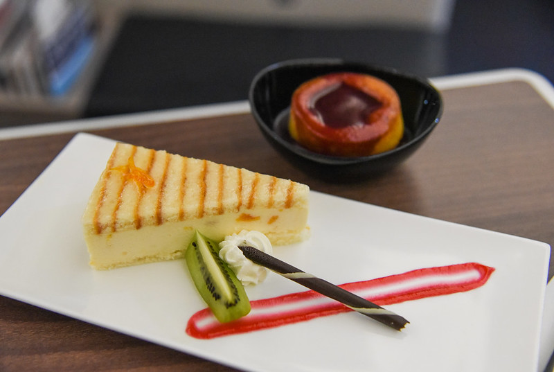 The trolley came by for the dessert selection. There were so many pieces of exquisitely presented sweets, akin to a bakery that I could not stop with just one cake. I picked a slice of orange cake and a warm apricot tart. The latter was heavenly!