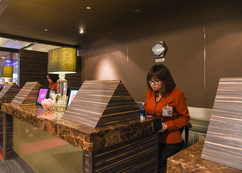 check-in counters at sats premier business class lounge