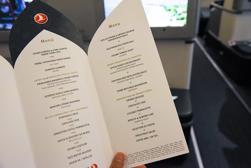 dinner menu – turkish airlines business class