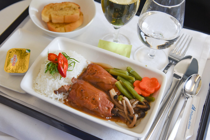 By default, I tend to choose the Filipino option when I fly Philippine Airlines. While I usually prefer their chicken dishes, I saw none among the mains so pork asado roll it was. The pork slices were served in huge chunks and were seasoned with soy sauce and vinegar – the latter giving it a hint of adobo flavor sans the heavy gravy.