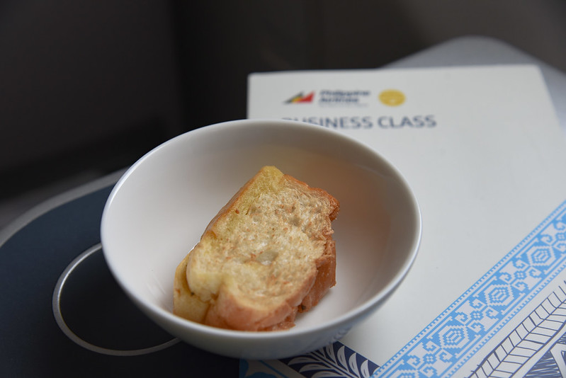 I don’t know how to put it but there’s something about aircraft catering and their garlic bread. It is always done well. I tend to choose garlic bread whenever it is available in the bread basket. The catering service of Philippine Airlines does it hot and crispy just as I like it. The friendly flight attendant seemingly read my mind and offered me two slices.