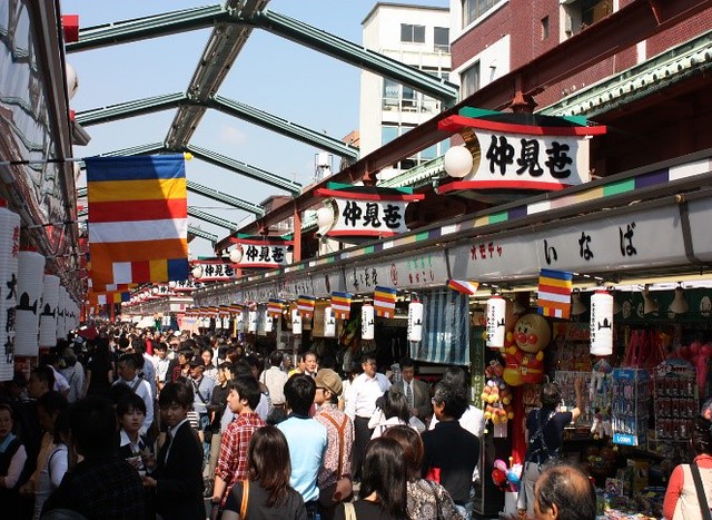 Asakusa presents a dramatic juxtaposition to the fast-paced and cutting-edge side of Tokyo. Here, rickshaws compete for space with Japanese-made cars while a good proportion of locals go about their daily business dressed in classical attire.