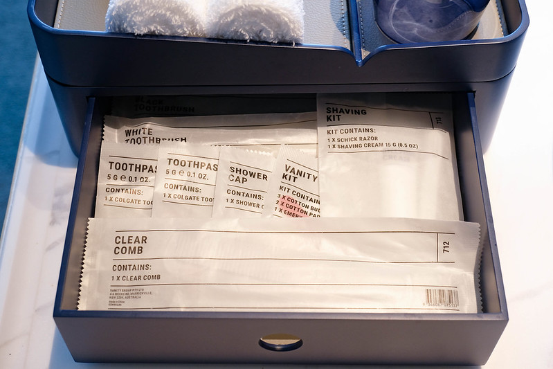 The complete set of toiletries were neatly stored away in a small drawer by the sink. Toiletries here are the dispensing type and come from Diptyque.